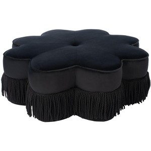 Enhance your living space with the Tanith Flower Ottoman in Black. This versatile piece is designed to offer both functionality and style. Constructed with durable wood, covered in a rich fabric, and filled with comfortable foam, this ottoman adds a touch of elegance to any room. Its black color easily complements a variety of decor styles, making it a seamless addition to your home. Whether used as extra seating, a footrest, or a stylish centerpiece, this ottoman is sure to please. Enjoy the blend of form and function with the Tanith Flower Ottoman�a beautiful accent for your living room, bedroom, or office.