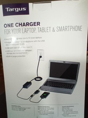 [This review was collected as part of a promotion.] Targus Laptop Charger with USB Fast Charging Port came in a well-standard package that had numerous attachments! The Targus brand is known and trusted! The laptop charger with splitter to charge phone is lightweight and easy to connect! All items for this charging device charger with accessories are lightweight and a small size! With these charger's accessories it was a little difficult to connect laptop and cell at the same time to charge!