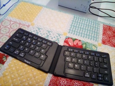 [This review was collected as part of a promotion.] This little keyboard is the best travel keyboard ever. The connectivity is solid and the battery lasts a very long time. Though the layout is something to get used to, once you do, you don’t want to go back to a traditional keyboard. I do wish there was some sort of stand on the keyboard for ergonomic purposes, but all in all it’s a great keyboard for the price.