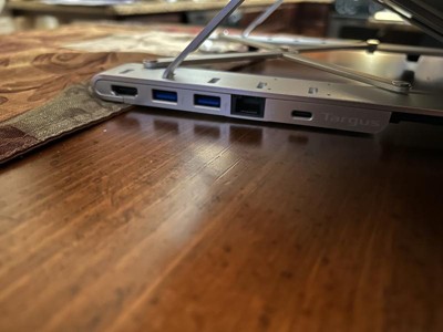 [This review was collected as part of a promotion.] This space saving laptop stand by at Argus is definitely a game changer for a person like me working from home. This Portable Laptop Stand + Integrated Dock has useful features like . Easily connect a monitor, peripherals, and power to a host laptop via a single cable The different ports available are USB-C® 5 Gbps Alt. Mode 10-inch host cable supporting PD pass-thru Fast Role Swap** 2 x USB-A ports (5 Gbps) 1 x USB-C port (5 Gbps) for data only 1 x USB-C Power Delivery 3.0 pass-thru port 1 x Gigabit ethernet port This is light in weight and is easy to Cary and folds pretty small has 5 adjustable heights helping in heat reduction Many computers are compatible. It also has a Limited 2-Year Warranty.