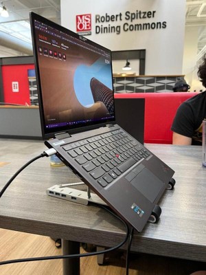 [This review was collected as part of a promotion.] I travel across the state for work, so I’ve been on the lookout for a laptop stand that I can use it to go. This is the first one that actually fits in my laptop bag. It has made my life so much easier. I love all the connections and being able to dock my laptop.