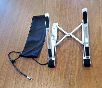 [This review was collected as part of a promotion.] I got the Targus - Portable Laptop Stand + USB-A Hub. It was self explanatory on how to set up. I was able to adjust each arm manually to adjust the height. Then to set up the wires was simple. It also added additional USB ports to my laptop. It also comes with a simple storage bag for easy transport for on the go. I suggest this portable laptop stand.