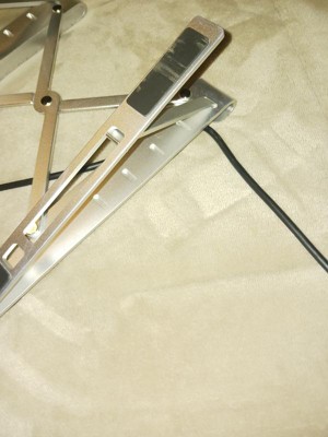 [This review was collected as part of a promotion.] Great portable laptop stand. Lightweight but sturdy. Collapses easily into a sleek fabric pouch. Adds almost no weight to your carry-on. No parts to put together. Builtin USB. Get two, one for home, the other for travel.