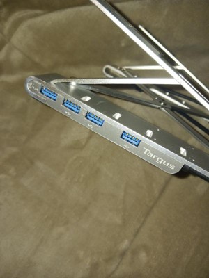 [This review was collected as part of a promotion.] Targus portable laptop stand works great. It securely holds your laptop. The stand has 5 different levels of adjustment. It has 4 USB ports which is great for all your needs. It folds up nicely and easy to take with you and takes up little space. It works great and is a quality product and will last a long time. I recommend this