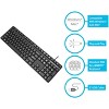 The Targus Corporate Keyboard features a full-size 104 key QWERTY layout for ergonomic comfort. This keyboard meets corporate IT standards for its quality construction and functional layout. The USB connection provides true plug and play capabilities making this keyboard simple and easy to use.