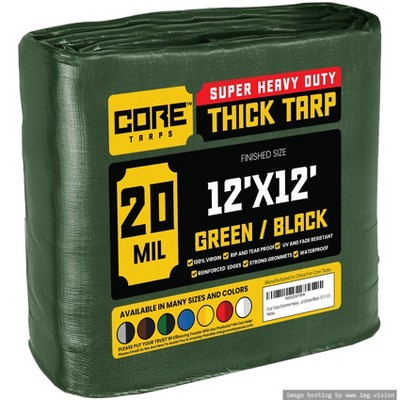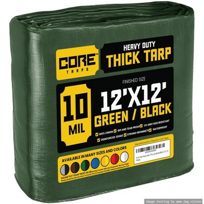 Tarpco Safety 144'' X 144'' Heavy Duty 7 Mil Tarp Cover, UV Resistant, Rip Proof, Green / Black, Poly Tarpaulin, for Roof, Camping, Patio, Pool, Boat