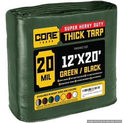 Tarpco Safety 144'' X 240'' Heavy Duty 7 Mil Tarp Cover, UV Resistant, Rip Proof, Green / Black, Poly Tarpaulin, for Roof, Camping, Patio, Pool, Boat