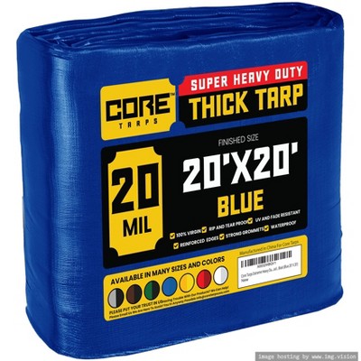 Tarpco Safety 240'' X 240'' Heavy Duty 7 Mil Tarp Cover, UV Resistant, Rip Proof, Blue, Poly Tarpaulin, for Roof, Camping, Patio, Pool, Boat
