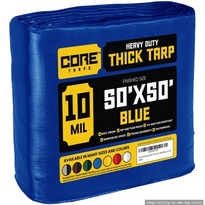 Tarpco Safety 600'' X 600'' Heavy Duty 7 Mil Tarp Cover, UV Resistant, Rip Proof, Blue, Poly Tarpaulin, for Roof, Camping, Patio, Pool, Boat