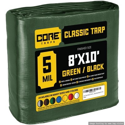 Tarpco Safety 96'' X 120'' Heavy Duty 7 Mil Tarp Cover, UV Resistant, Rip Proof, Green / Black, Poly Tarpaulin, for Roof, Camping, Patio, Pool, Boat