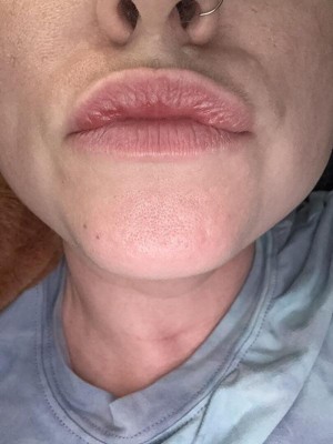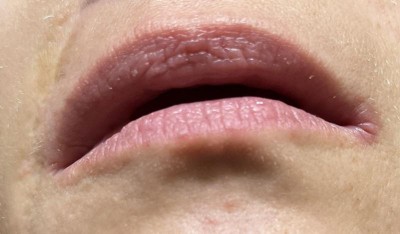 I’ve used it again twice, and my lips are extremely dry and chapped. Both times, I got a sore in the left corner of my mouth. My lips are so dry they’re peeling, and I have visible lines running down them. I applied this on a Sunday, and the attached picture shows what they looked like on Saturday.