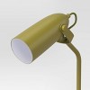 Elevate your workspace with this Task Table Lamp with Nightlight from Room Essentials™. This task lamp features an integrated bulb and a cylindrical base with a bottom rim that lights up on touch. The base also boasts a section to keep pens, pencils and other items, plus two USB ports for your gadgets. Designed in a green hue with matte finish, this task lamp matches with a variety of decor schemes.