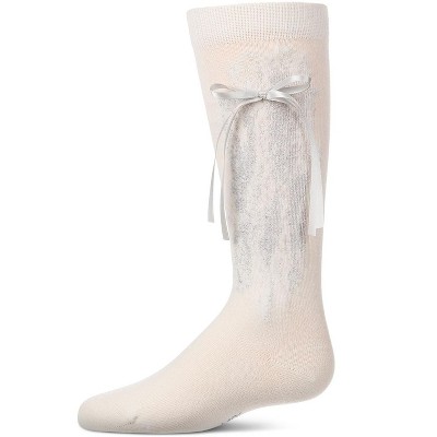 Boho chic meets cozy comfort. These pretty girls' knee socks come in our premium blend: cotton soft for soothing softness, with spandex for shape keeping fit. They're trimmed with a dainty lettuce edge, adorned with a tassled yarn bow, and finished with pointelle ribbing for the latest girly girl look.