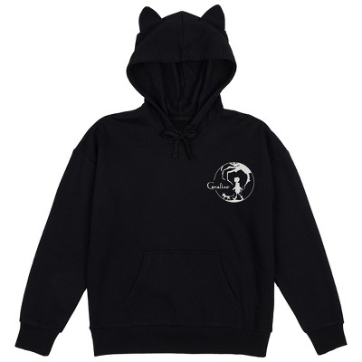 Tasty Peach Black Hole Cat I Suck Women's Black Long Sleeve Hooded Sweatshirt-Medium