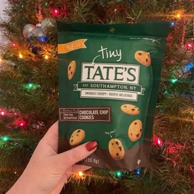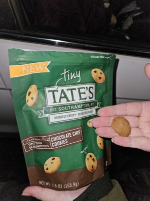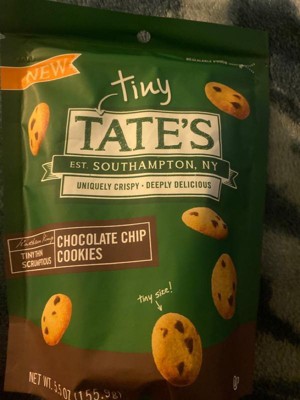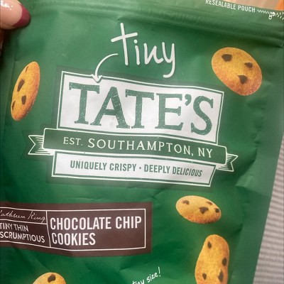 - Tate’s tiny chocolate chip cookies come in a resealable bag keeping them fresh and ready to share