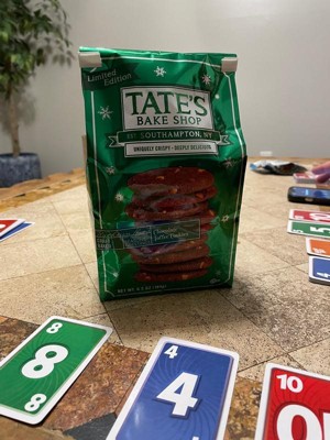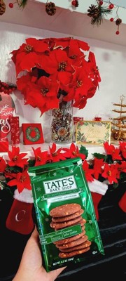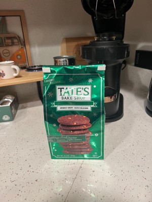 [This review was collected as part of a promotion.] Delicious taste cookies! The flavor is chocolatey and perfect for the holiday season (by the sparkling packaging). I really like tates cookies in the hard cookie category. These are gonna be good to pick off the shelf.