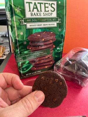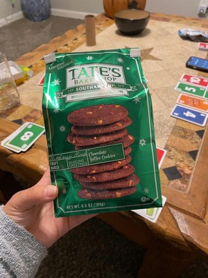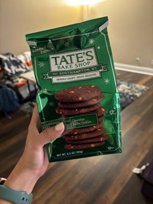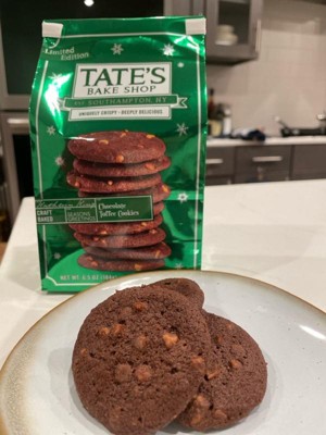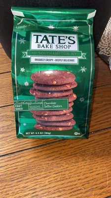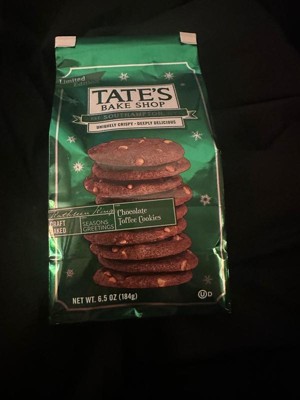 [This review was collected as part of a promotion.] These are so delicious. I typically don’t gravitate toward chocolate cookies, but I cannot get enough of these. They are so nice and crispy and the toffee taste is so good! I love tates cookies and these are no exception