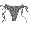 It offers minimal coverage and ties at the sides for an adjustable fit. Manufactured in the United States, this swim bottom also encourages easy care with instructions to hand wash and lay flat to dry.