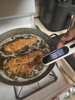 This thermometer is great! My husband swears by meat thermometers when grilling, and honestly, everything is cooked to perfection every time. This thermometer is awesome, not just because it can test meat temps well, but also because it has a sensor feature. This is great for items such as our griddle, which gets very hot and usually unevenly so. This is good for us to check our griddle over different burners on the stovetop, since the part of the griddle that sits over the back burner always gets significantly hotter than the part sitting over the front burner.