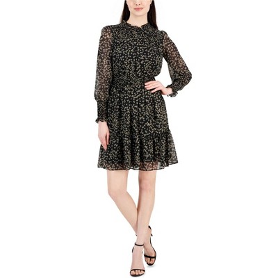 Taylor Womens Printed Foil Tiered Fit & Flare Dress