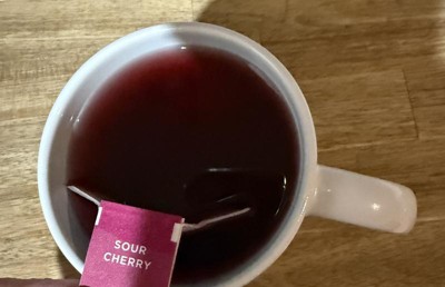 I was really excited to try the sour cherry tea! It does have a Nice strong cherry taste as well as a black licorice aftertaste. I love to enjoy it With honey and lemon. The scent is very invigorating. If you are a big tea person, you must try this you will not be disappointed!
