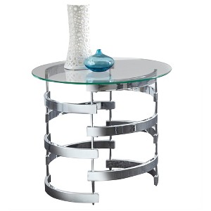 Tayside End Table Glass and Chrome - Steve Silver Co.: Circular, Chrome Frame, Tinted Top