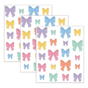 Teacher Created Resources® Bows Accents, Assorted Sizes, 60 Per Pack, 3 Packs | Add a pop of color and style to your classroom with this versatile pack of decorative artwork. With 60 pieces per pack, you'll have plenty to label bins, desks, and accent bulletin boards. The four different sizes range from 6-1/8" to 2-5/8", giving you options for various uses. Plus, with six vibrant colors to choose from, you can mix and match to create a fun and engaging learning environment. Whether you're a teacher looking to spruce up your classroom or a parent wanting to add some flair to a home learning space, this pack is sure to impress. Sold as 3 packs for a total of 180 accents.
