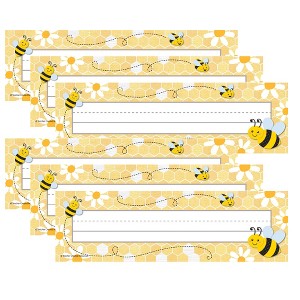 Teacher Created Resources® Buzzing Bees Flat Name Plates, 36 Per Pack, 6 Packs | These versatile name plates are perfect for helping teachers and substitute teachers quickly learn students' names while adding a personal touch to the classroom. Use them to label learning centers, storage areas, and portfolio collections, or laminate them to create vocabulary flash cards or word bank labels. Designed to bring vibrant color and organization to any classroom setting, making it a more engaging and functional learning environment. Each pack includes 36 name plates measuring 11-1/2" x 3-1/2". Sold as 6 packs for a total of 216 name plates.