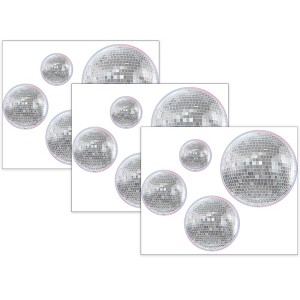 Teacher Created Resources® Disco Balls Accents, Assorted Sizes, 60 Per Pack, 3 Packs | Add a touch of fun and creativity to your classroom with this pack of decorative accents. With 60 pieces per pack in four different sizes, you can easily dress up walls, doors, bins, desks, and bulletin boards. Whether you're organizing your classroom or adding a pop of color, these accents are perfect for adding a personal touch to your learning environment. Let your imagination run wild and create a space that is both functional and visually appealing with these versatile decorations. Sold as 3 packs for a total of 180 accents.