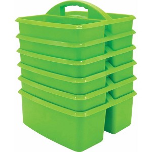 Teacher Created Resources® Lime Plastic Storage Caddy, Pack of 6 | These storage caddies are a handy tote for your markers, calculators, timers, manipulatives, and many more small items that you want to keep within reach. These caddies are made from durable plastic and includes divided compartments for easy organizing. Each caddy measures 9" L x 9-1/4" W x 5-1/4" H. Sold as a pack of 6 caddies.