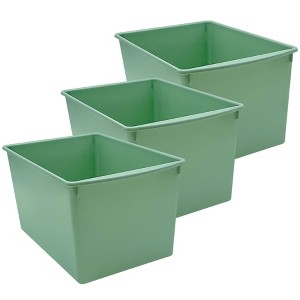 Teacher Created Resources® Plastic Multi-Purpose Bin, Eucalyptus Green, Pack of 3 | Keep items organized and close at hand and the rest of your space clutter-free with these multi-purpose bins. Large enough for papers, books, notebooks, and other materials, these sturdy bins corral supplies and can be stacked for easy storage. Each bin is BPA free and measures 14"L x 9-1/4"W x 7-1/2"H. Sold as a pack of 3 bins.