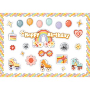 Teacher Created Resources® Roller Disco Birthday Create & Decorate Quick Kit, 121 Pieces | Create a fun and festive atmosphere with this all-in-one decorating kit! With an easy-to-assemble setup, you can focus on making lasting memories without the hassle. Plus, you can add your own creative spin to customize the look and make it truly unique to your style. Includes 2 pieces spelling out "Happy Birthday", 1 rainbow centerpiece, 12 month pieces, 78 accents (ranging in size from 2.25" to 13"), 2 hanging paper honeycomb balls (6" in diameter), 2 flowers with honeycomb balls (6" in diameter), 24 borders (12.5" x 2.1" each, 25 ft. total). 121 total pieces.