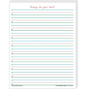 Teacher Created Resources® Smart Start 1-2 Writing Paper: 100 Sheets | Smart Start Writing Paper (8-1/2" x 11") is truly a "Smart Start" for beginning and experienced writers. Bold graphics in blue, green, and red promote the feeling of success as children simply "Start at the Sky and pull down to the Ground" to form letters correctly. 1-2 Writing Paper lines have 5/8" spacing. Package includes 100 sheets.
