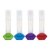 Teacher Created Resources® Up-Close Science: Graduated Cylinders Activity Set | Inspire young scientists to pour, measure, and explore the wonders of the natural world! The Graduated Cylinders Activity Set makes science fun with hands-on activities that encourage experimentation, observation, and analysis. Use the five provided double-sided activity cards to ask observation questions, introduce basic scientific concepts, and perform simple experiments using common household and classroom materials. Perfect for stations or independent exploration. Each of the 4 clear cylinders is approximately 7" tall, 1-1/4" in diameter, and can hold 100mL of liquid (measured in increments of 10mL). The cylinder bases come in 4 different colors and have a diameter of 2-3/4" at the widest points. Ages 3+