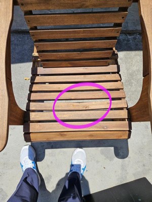 While these chairs look nice, the quality leaves a lot to be desired. We purchased 5 one month ago. 2 weeks in one already has a broken slat across the center of the seat. These are barely used so this is disappointing. The overall quality isn't great, especially for the cost- they shouldn't be disposable. Hoping the other four at least make it through the season. Worst part is, we have to take the chair apart and ship back it's parts broken to have it replaced. It's garbage...