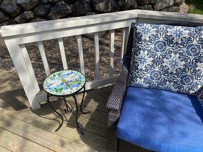 Teal Island Designs Modern Black Round Outdoor Accent Side Table 14" Wide Blue Green Dragonfly Mosaic Tabletop Front Porch Patio Home House