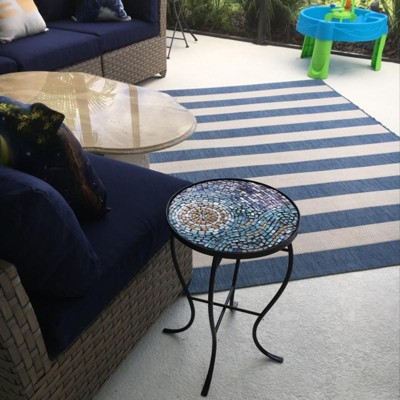Teal Island Designs Modern Black Round Outdoor Accent Side Table 14" Wide Blue Ocean Mosaic Tabletop Front Porch Patio Home House