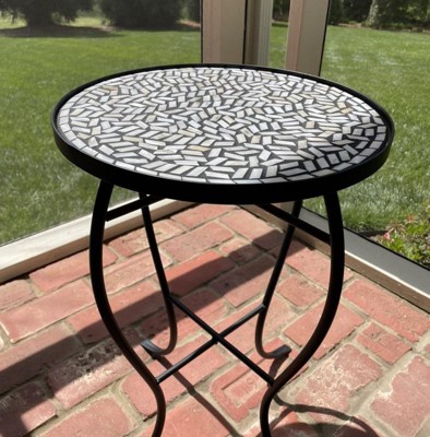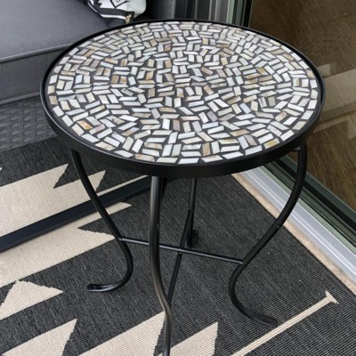 I ordered 2 mosaic side tables in the white iridescent tiles for my screened in porch. They are small enough not to take up too much space yet with enough table space to hold a drink, a cellphone and a snack. I’m so pleased with the quality of these tables as they are very sturdy iron, glass and tile. The feet have rubber pads so the iron feet will not scratch your flooring. They were very easy to assemble...only took about 5 minutes per table to attach the legs to the tops. They arrived securely packaged and in excellent condition. It’s a pleasure to purchase great quality for a fair price.