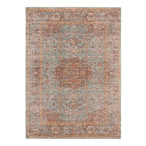This 2-foot x 3-foot teal red and orange medallion area rug, is a great way to add warmth to a room. Ideal for spaces with kids and pets, this rug is stain resistant to help repel dirt and spilled liquids. Built to last, this rug crafted from polypropylene fibers is known for its durability and long lasting appeal. Rugs are a great way to showcase your style, hide imperfections, warm your home and reduce noise. This smaller sized, traditional styled rug is just what you need for your walkway, bedside, in front of door, cabinet, refrigerator, or chair. 26-inch h x 36-inch w x 0.15-inch d.