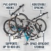 The G-Bike Ceiling Rack from Teal Triangle offers adjustable, ceiling-mounted storage for up to 4 bicycles. The innovative track system allows for adjsutable spacing between each bike hook for the perfect fit. Whether you have road bikes, mountain bikes, kids bikes, or all of the above, these bike hangers for garage storage are a space-efficient solution. Rubber-coated bike hooks gently hold bikes by the wheels without scratching. Built from solid steel and aluminum, the bike rack supports up to 50 lbs per bike hook, up to 250 lbs total. Not sure what ceiling joist spacing your home has? No problem. The ceiling mount brackets can accommodate both parallel or perpendicular ceiling joists of any spacing. Large, quality lag screws are included for maximum strength. Get organized and clear up garage floor space with this innovative overhead storage solution for up to 4 bikes!