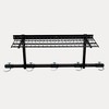 Organize up to five bikes with perfectly sized spacing using our adjustable storage solution. If your bike has oversized handlebars and needs a bit more room, simply move the attachment over to accommodate it. The protective, non-marking coatings on the hooks ensure a secure grip on your bike's tires while keeping your gear protected from scratches and damage. This versatile rack is designed to fit road, mountain, and kid bikes, allowing you to easily store a variety of bikes in one place. The attachment positions can be adjusted effortlessly with a quick pull, utilizing a secure 3D pin locking system. With a weight capacity of up to 300 lbs, this storage solution measures 46" L x 13.75" W x 16" H, making it a practical and efficient addition to any garage or storage area.