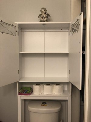 [This review was collected as part of a promotion.] This is a lifesaver. It was super easy to put together. It fits right over my toilet and is the perfect compliment to my bathroom. I keep my toilet paper and hand towels in here. It keeps everything tidy and out of sight. The doors open smoothly and close without issue. This is sturdy and I have no worries of it being unstable and moving at the slightest touch. This elegant space saver is totally worth it and will be used for a very long time.