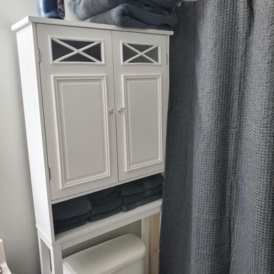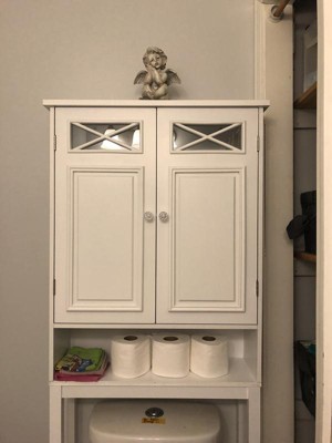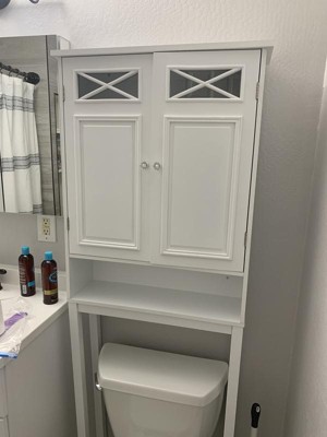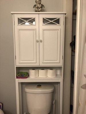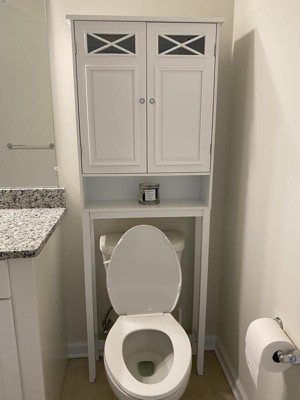 [This review was collected as part of a promotion.] This is one of the most elegant over the toiler space saver you can find in the market. Its really beautiful with glass doors and cross molding. Very helpful to store extra items in your bathroom or assign it to a guest to use for their bathroom products. Unfortunately, It is not very stable so I would highly recommend securing it on the wall. Overall, its a great product.