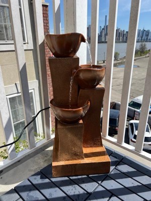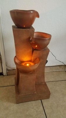 Teamson Home's 3-Tier Cascading Outdoor Water Fountain is a decorative multi-textured water feature with three shiny warm brown ombre bowls supported by textured columns. Each bowl is illuminated by LED lights, creating a unique light effect in the trickling water. Made of sturdy polyresin and stone powder, this decorative water fountain is a great accent to patios, decks, gardens, and other outdoor living spaces. Or create a soothing, spa-like environment in offices or lobbies.