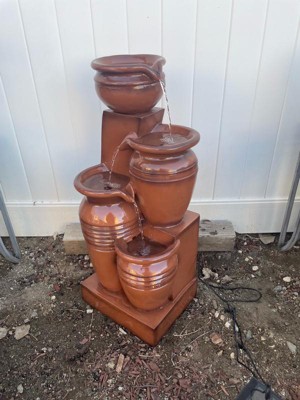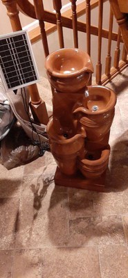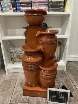 Teamson Home 28.7" 4-Tier Cascading Bowl Solar Powered Water Fountain for Outdoor Living Spaces, Terracotta