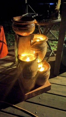 [This review was collected as part of a promotion.] This fountain is so adorable! It is in the smaller size but it’s still super cute for the front yard or backyard area. It was super easy to assemble and once you add the water it sounds so soothing. I wish the top one had a light as well (that’s why it didn’t get 5 stars) but overall I LOVE IT!