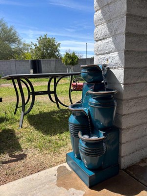 [This review was collected as part of a promotion.] The Teamson cascading fountain is a beautiful 4-tiered fountain that runs completely on solar power. The blue color of this fountain is stunning and looks very classy. I love that I can put the fountain anywhere in my yard (as long as there is direct sunlight) and I don't have to plug it in. The fountain runs quiet and is very relaxing.