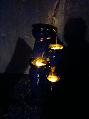 [This review was collected as part of a promotion.] Now that it's been up for a couple of days, I have had the opportunity to really appreciate the fountain. The assembley was easy. As long as you keep it filled with enough water, it flows like it's supposed to. And I had a chance to come home one night after the sun went down to enjoy the lights. I've never had one, so the material left me a little skeptical, but now that it's been a few days, I come home from work and just stare at the running fountain and enjoy the cascading water for a few moments.
