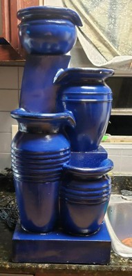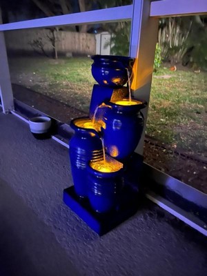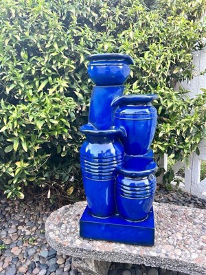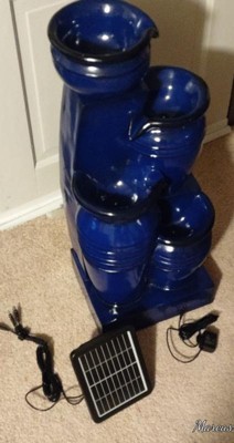 Teamson Home 28.74" 4-Tier Cascading Bowl Solar Powered Polyresin Waterfall Fountain Navy: Outdoor Garden Decor, Lit Feature