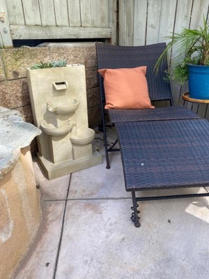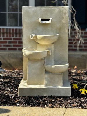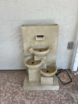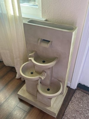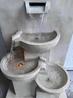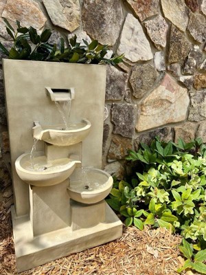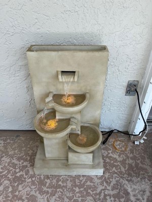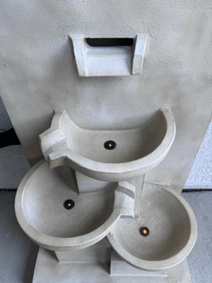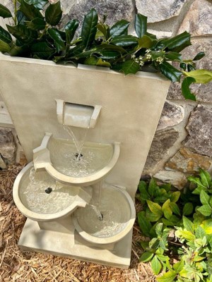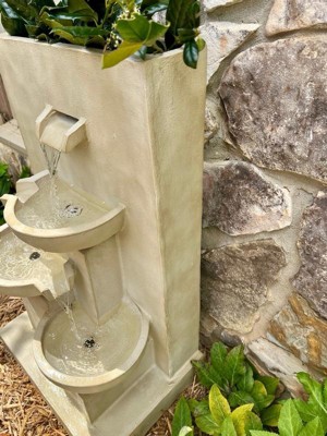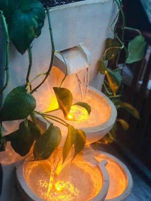 [This review was collected as part of a promotion.] This tiered fountain and planter is a beautiful addition to an outdoor space. It is made from a sturdy material with a smooth, natural stone finish, but it is still light enough to carry around fairly easily. It was pretty simple to set it up and get it going, and it looks very nice, especially with some greenery placed in the planter at the top. I have just been using this during the daytime, but it can also be used at nighttime with the included LED lights in the bowls.
